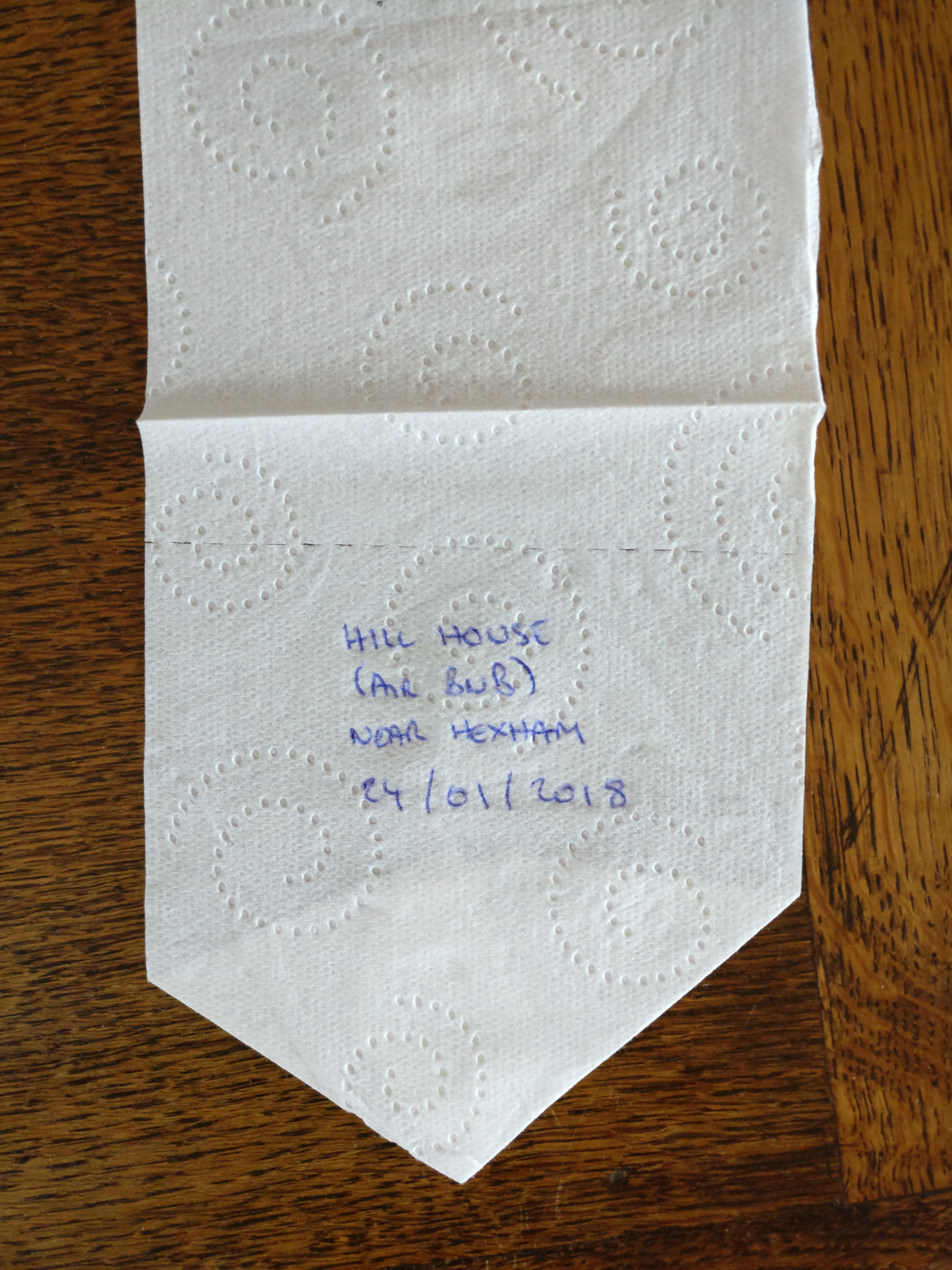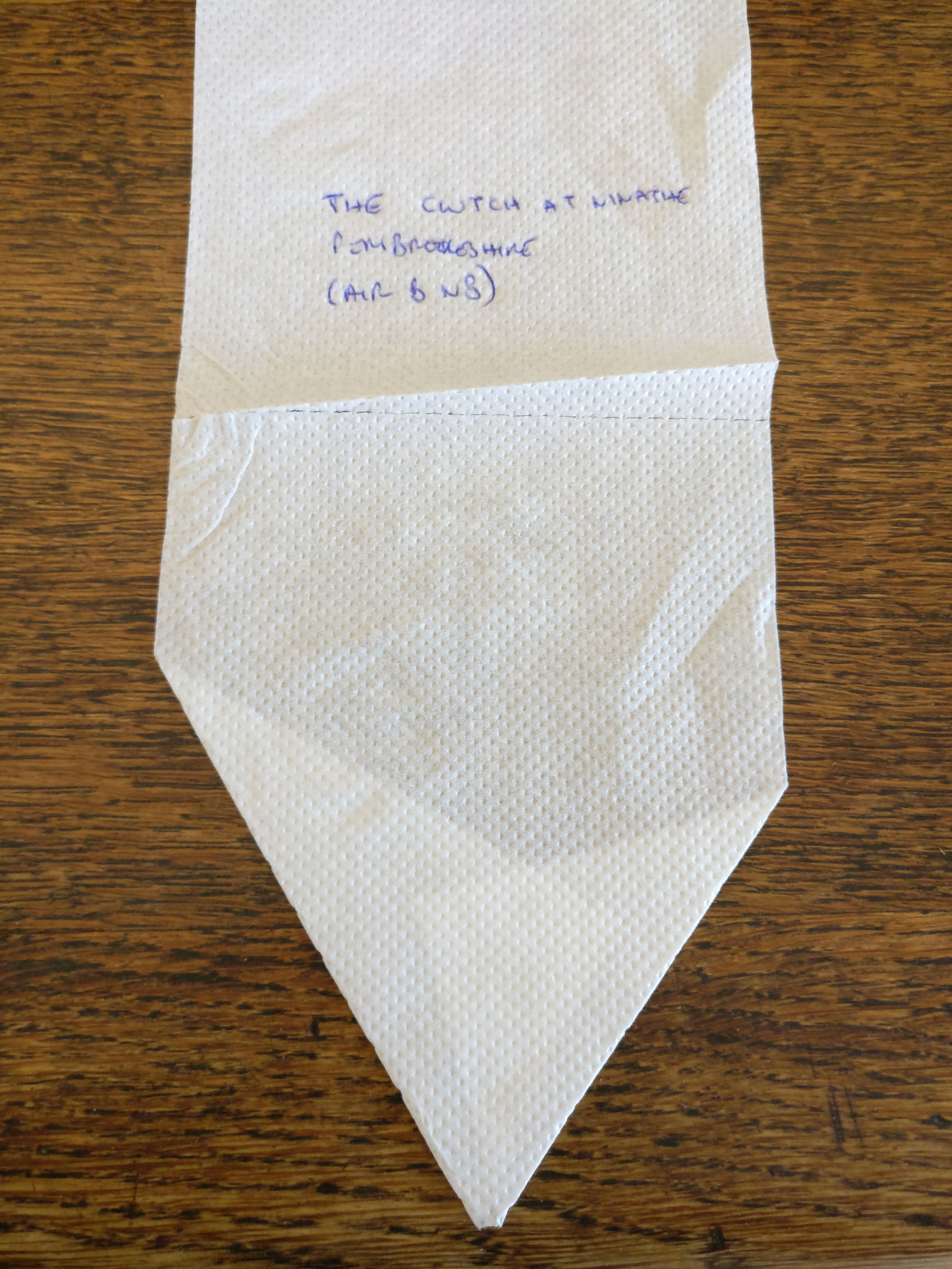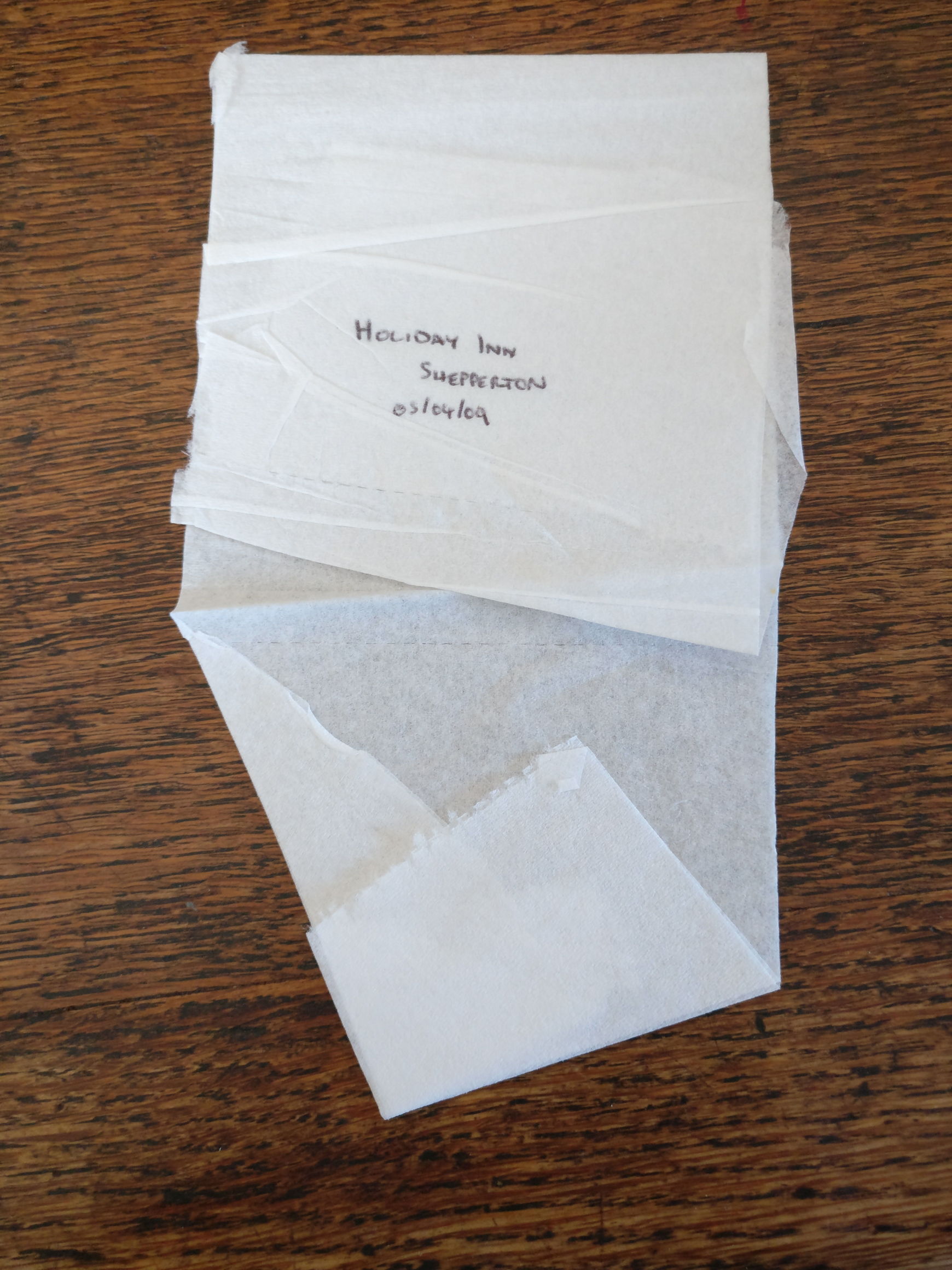 I planned to record where each sheet of toilet roll was from, but a gust of wind put paid to that idea: the sheets in the box got mixed up, and I had no way of telling which was which. So I struck upon the title of Anonymous Origami.