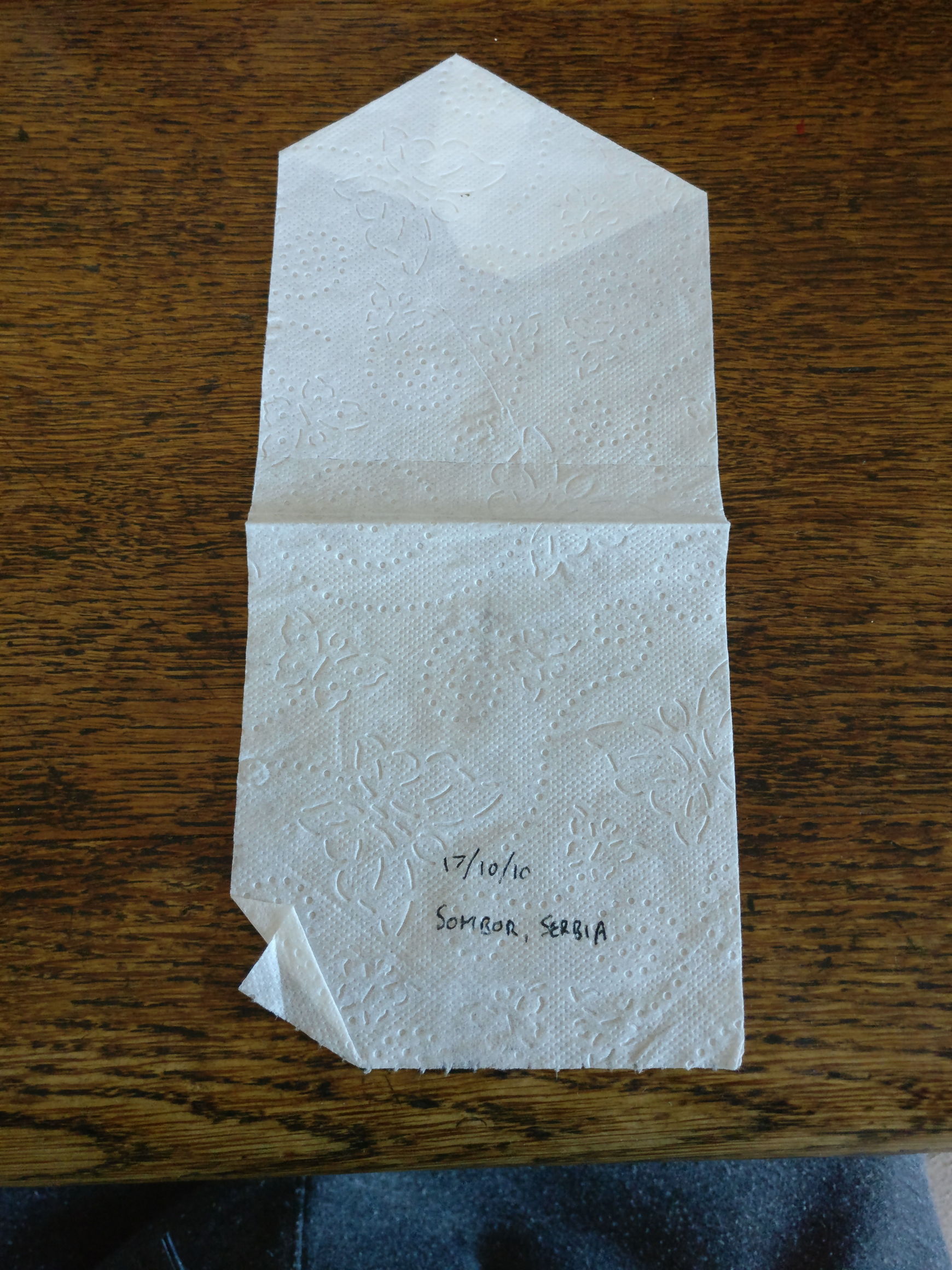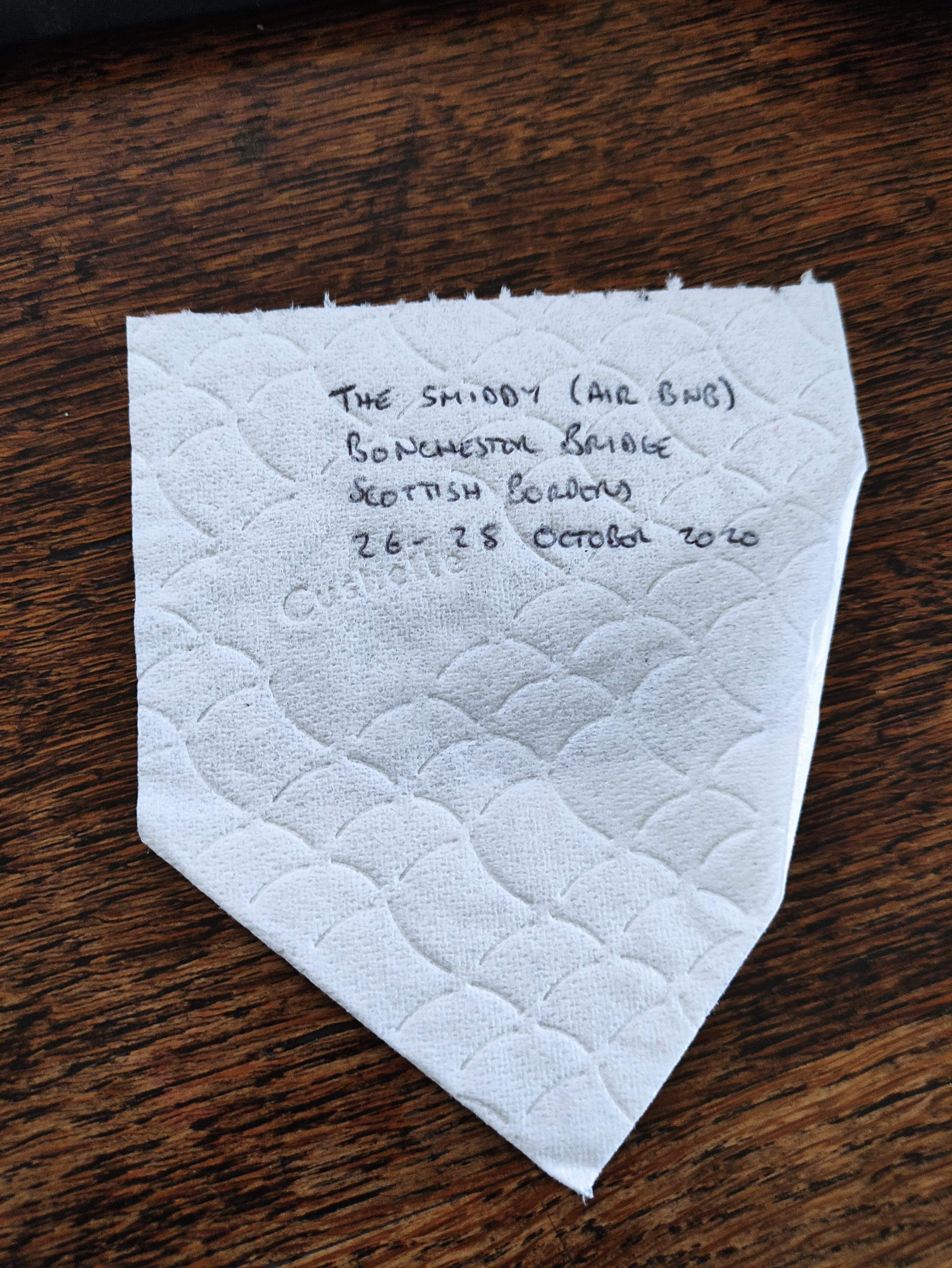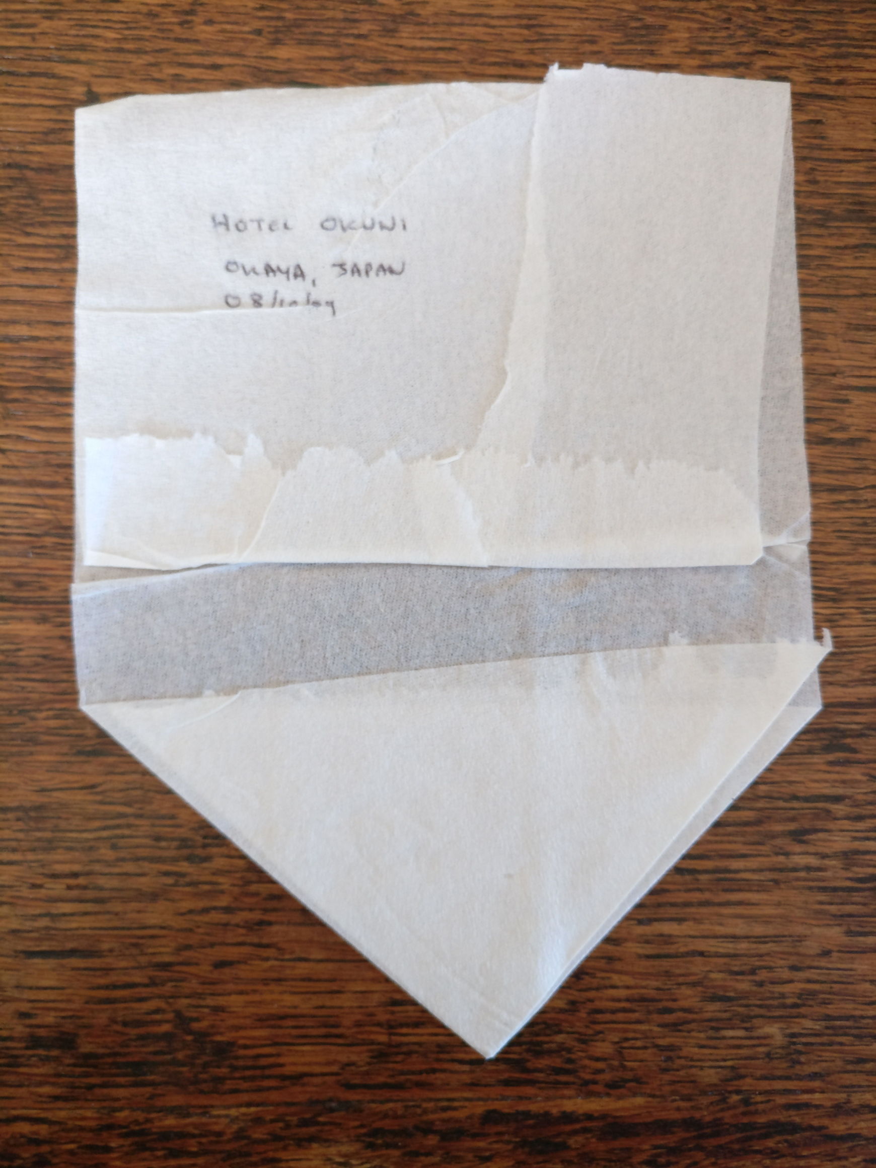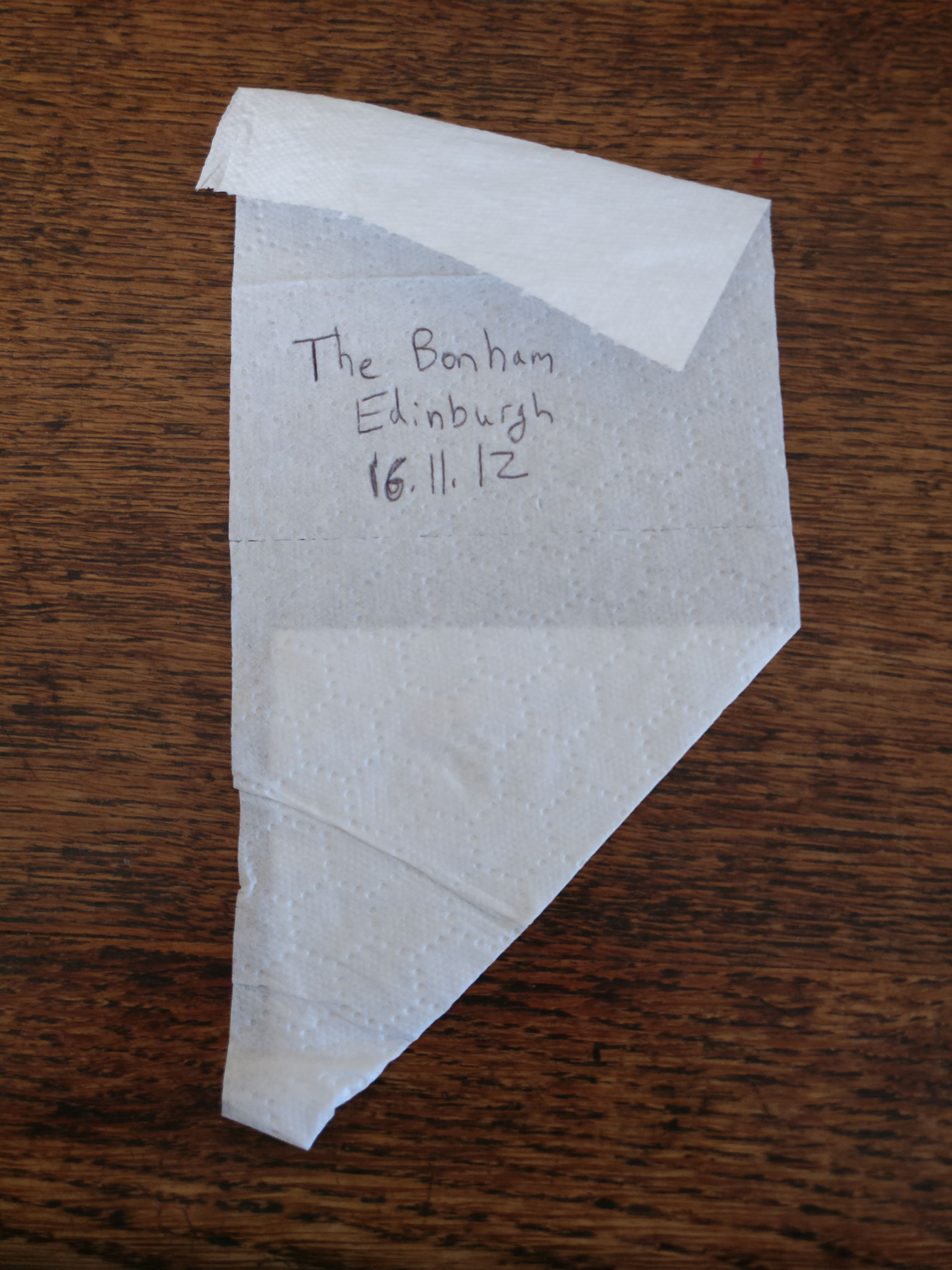 I planned to record where each sheet of toilet roll was from, but a gust of wind put paid to that idea: the sheets in the box got mixed up, and I had no way of telling which was which. So I struck upon the title of Anonymous Origami.