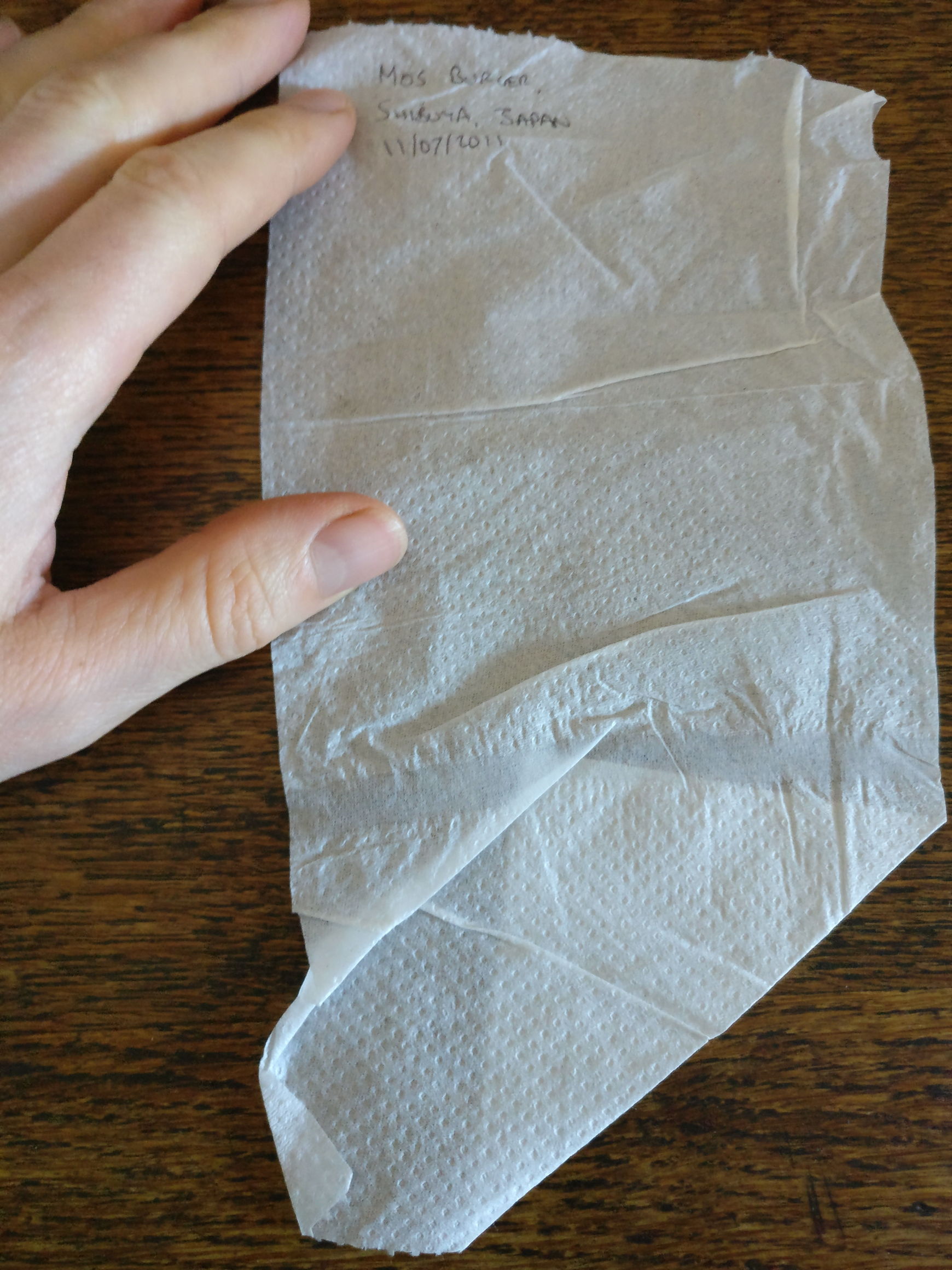 The origins of some I can remember, however. The Tokyo, with its tiny pleats, really stands out. Only in Japan did I find such minute attention to detail. It made me smile to think of someone creating these precise folds, when, in a few hours, the sheet would be ripped off and flushed down the loo. The New York City, on the other hand, is very poor quality, asymmetrical on rough, thin paper. And the Romania is a great slab with a small, right-hand fold. It struck me that these differences must reflect the mood of the people who created them: whether they were in a rush, how they were feeling.
